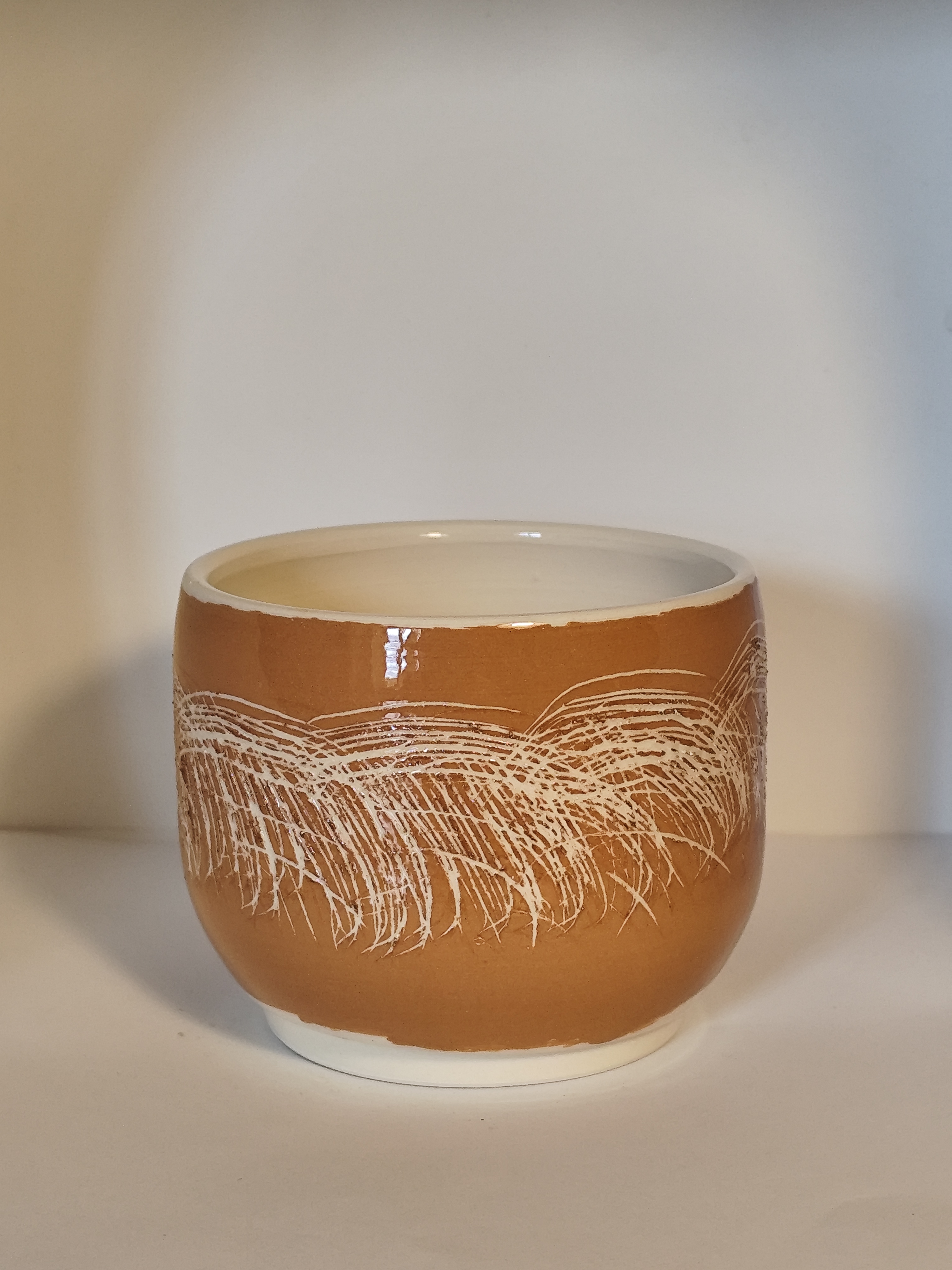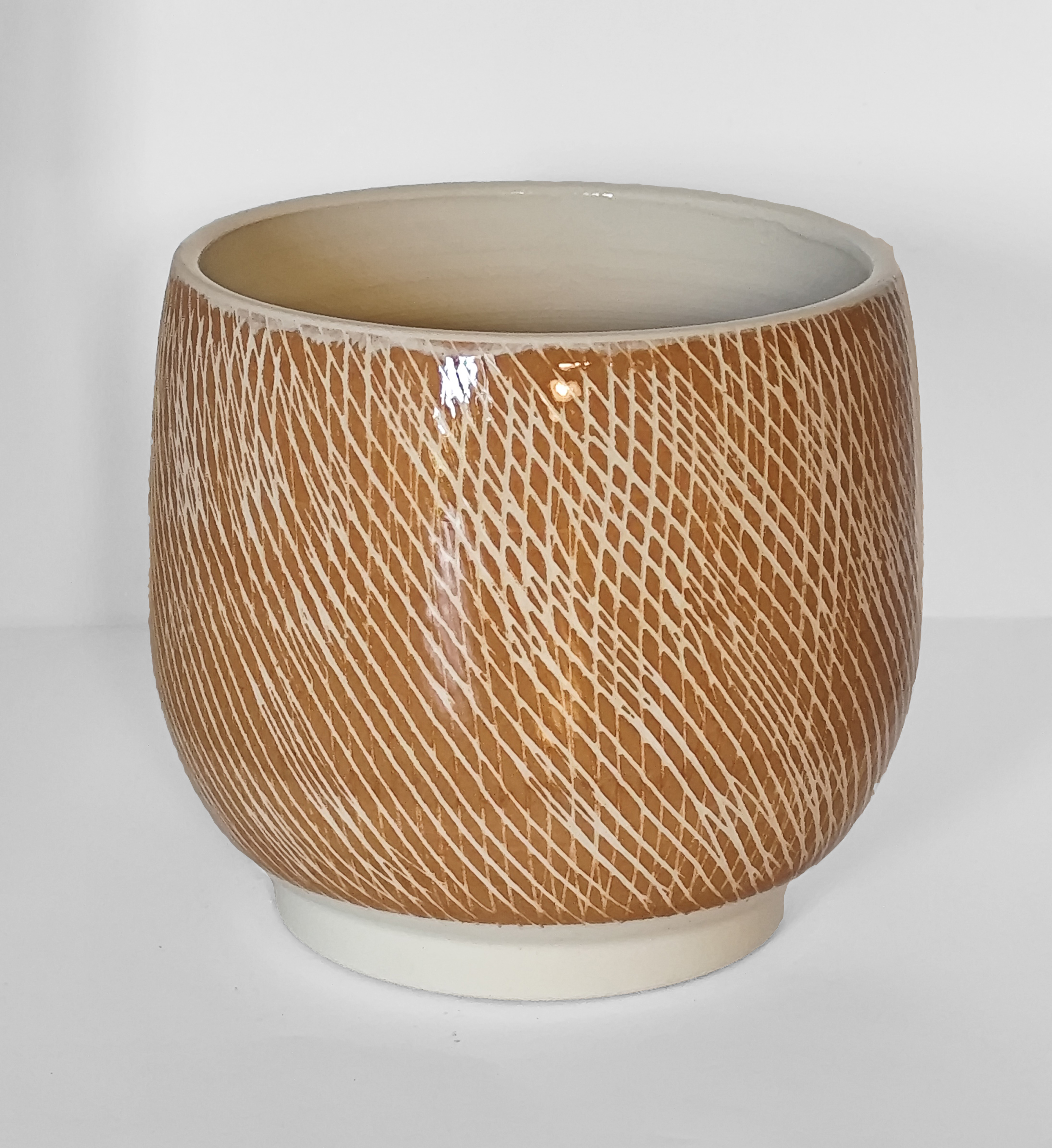 Tazza con segni incisi, terra bianca smaltata, engobbio. h 8 cm